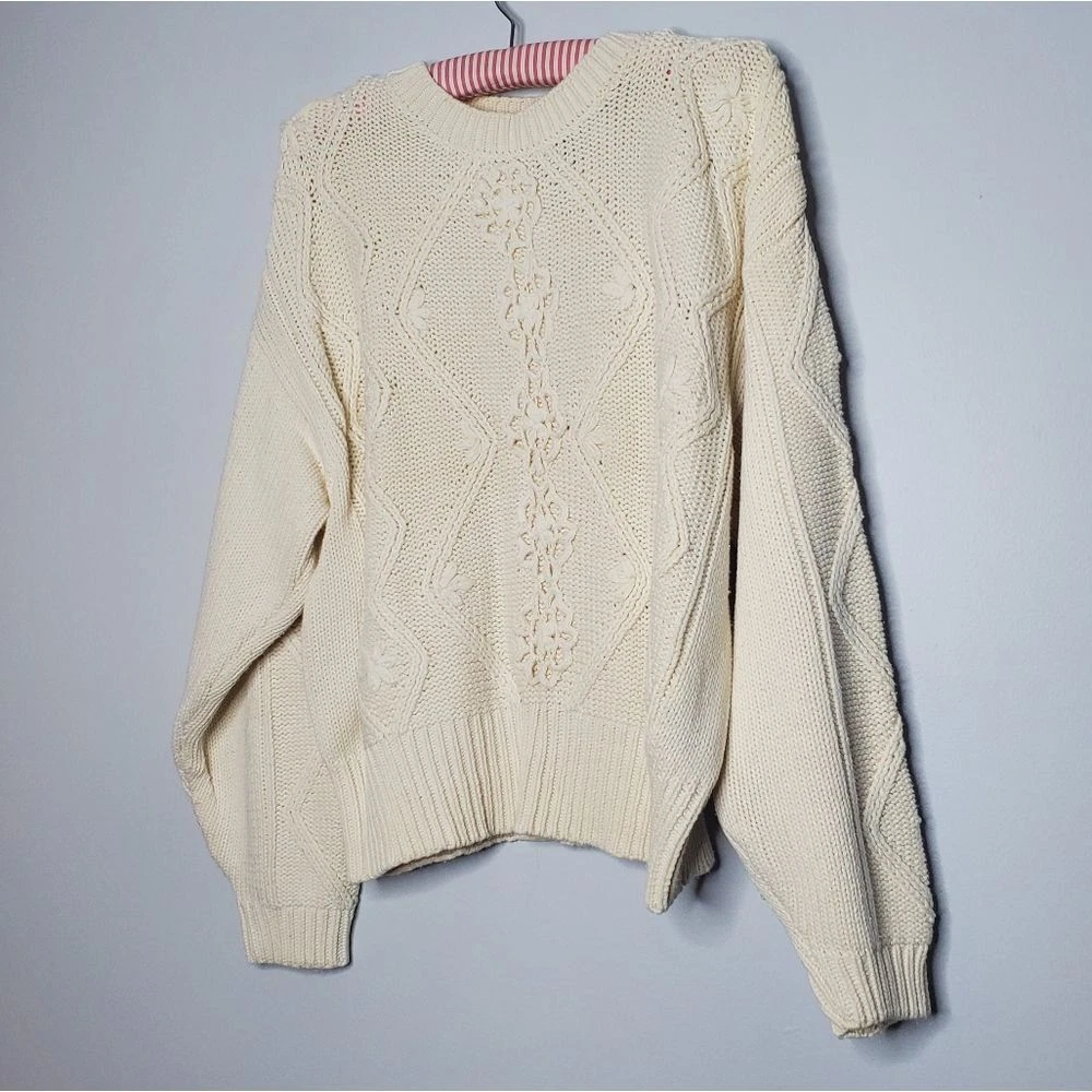 Liz Claiborne Liz Wear M Cotton Knit Sweater Off White Cream Heavyweight Ebay
